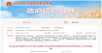 近日农业农村部办公厅发布关于做好2024年中国农民丰收节有关工作的通知。通知指出,今年丰收节以“学用‘千万工程’礼赞丰收中国”为主题各地要学习运用“千万工程”经验,坚持农民节日为农民、农民节日农民办,激发农民群众创造美好生活的干劲,全力确保粮食和重要农产品稳定安全供给助力推进乡村全面振兴。 农业农村部办公厅关于做好2024年中国农民丰收节有关工作的通知。